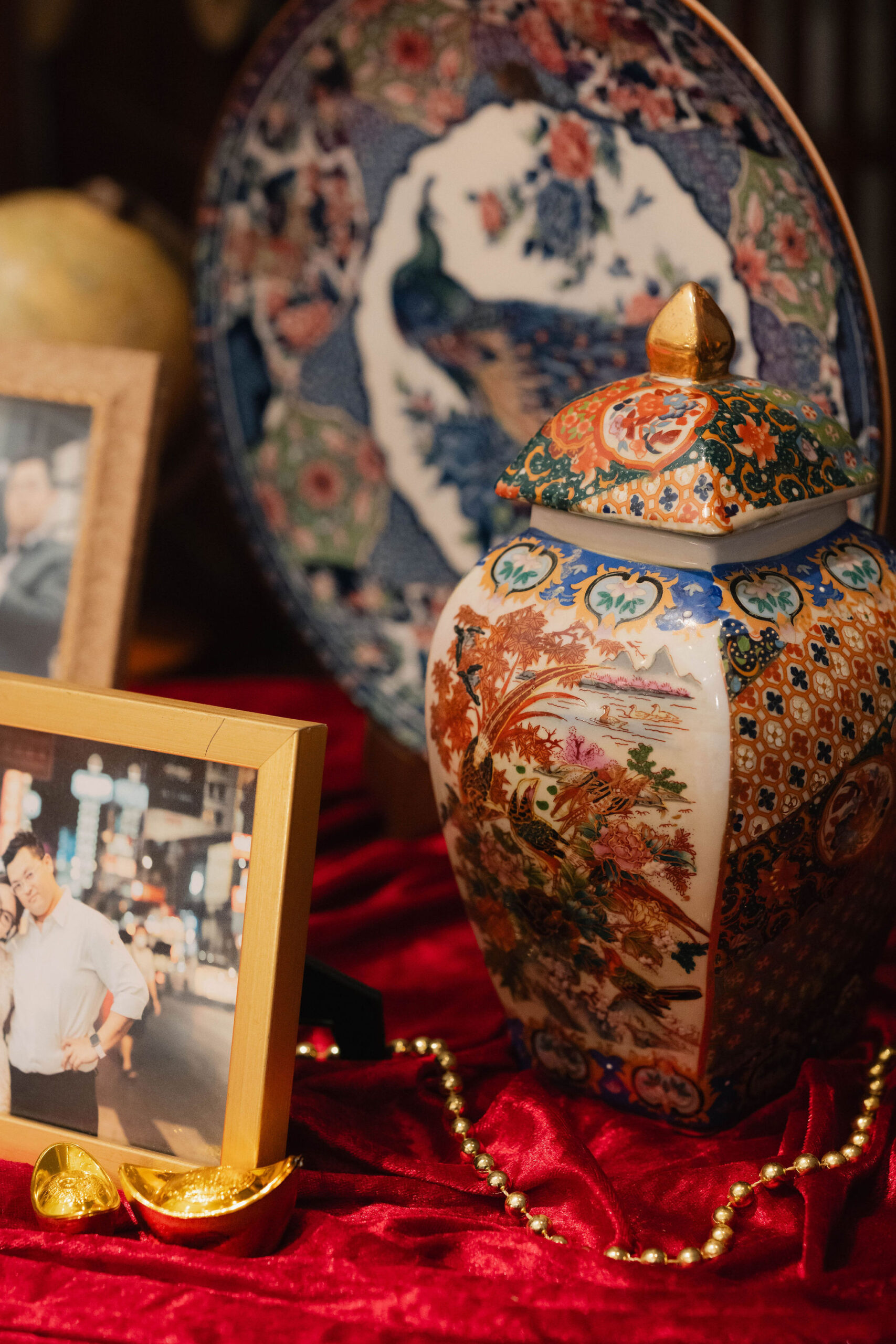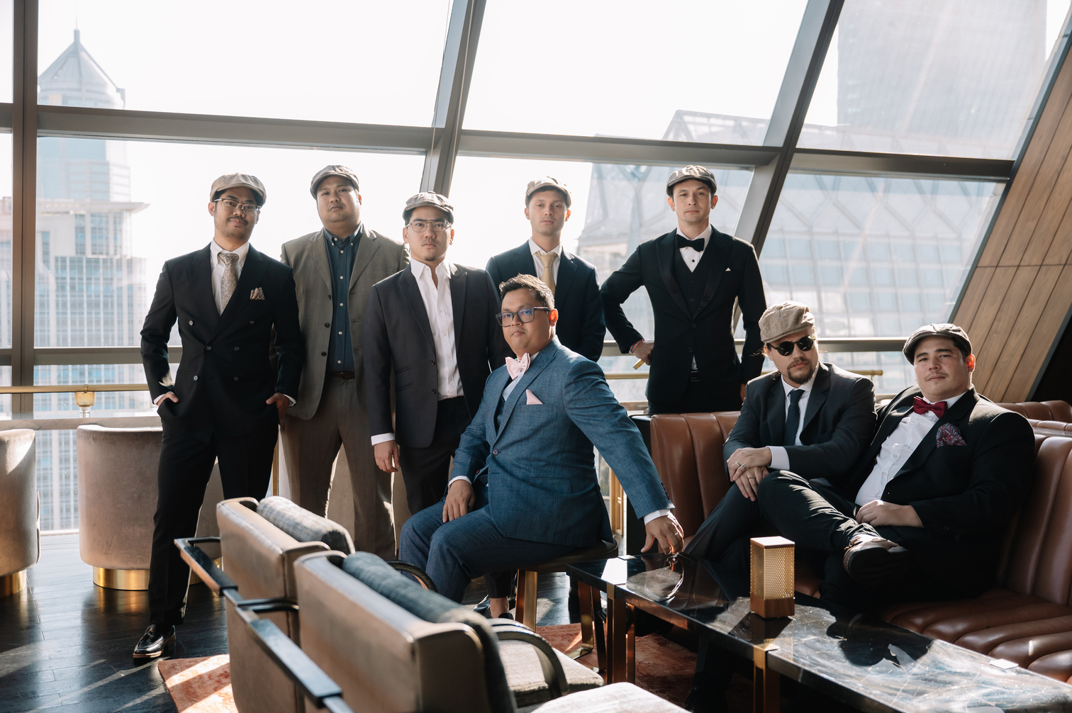 The couple made their entrance dressed in custom pieces that honored the theme with quiet reverence. The bride wore a white qi pao, her hair styled in glamorous fingerwaves, while the groom stood beside her in a structured suit with vintage detailing. But it wasn’t just the visuals that set this wedding apart, it was the emotion, the intentionality, the venue setting, and the storytelling behind every detail.