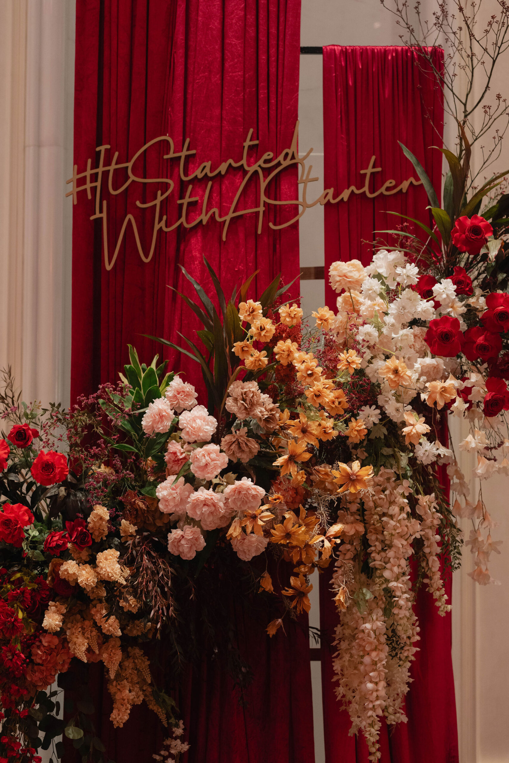 In the world of luxury weddings, fresh flowers often steal the show. But this couple took a different approach. Most of the floral arrangements throughout the wedding were crafted from high quality artificial blooms selected to blend seamlessly with fresh elements for a dynamic, lush result.