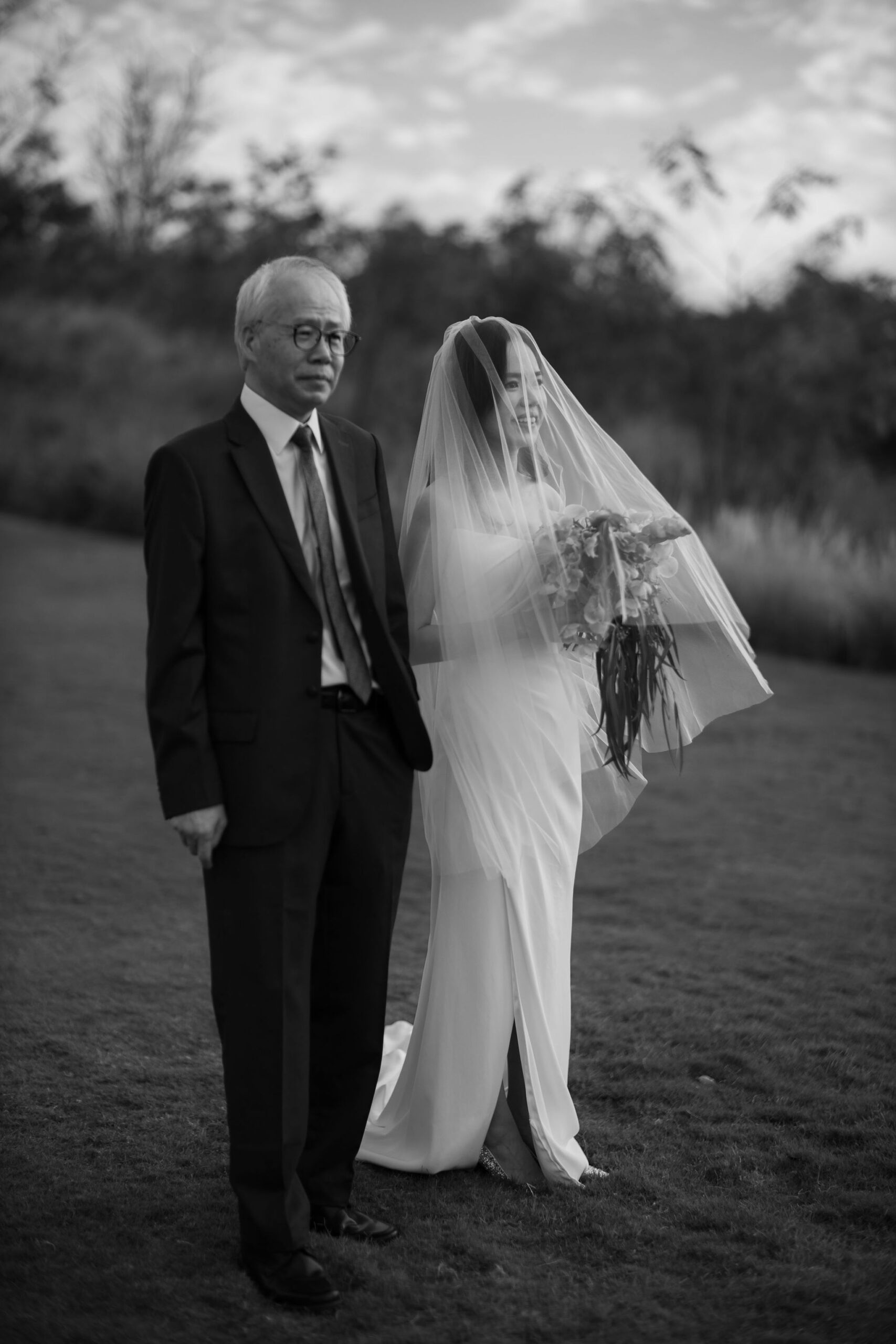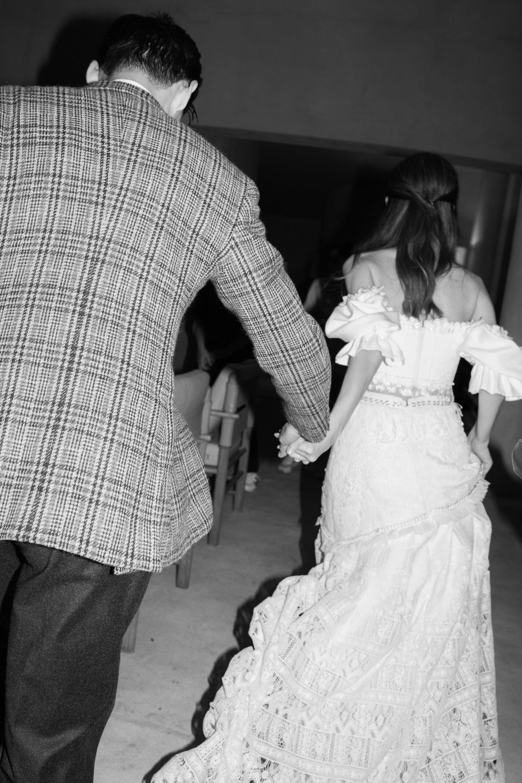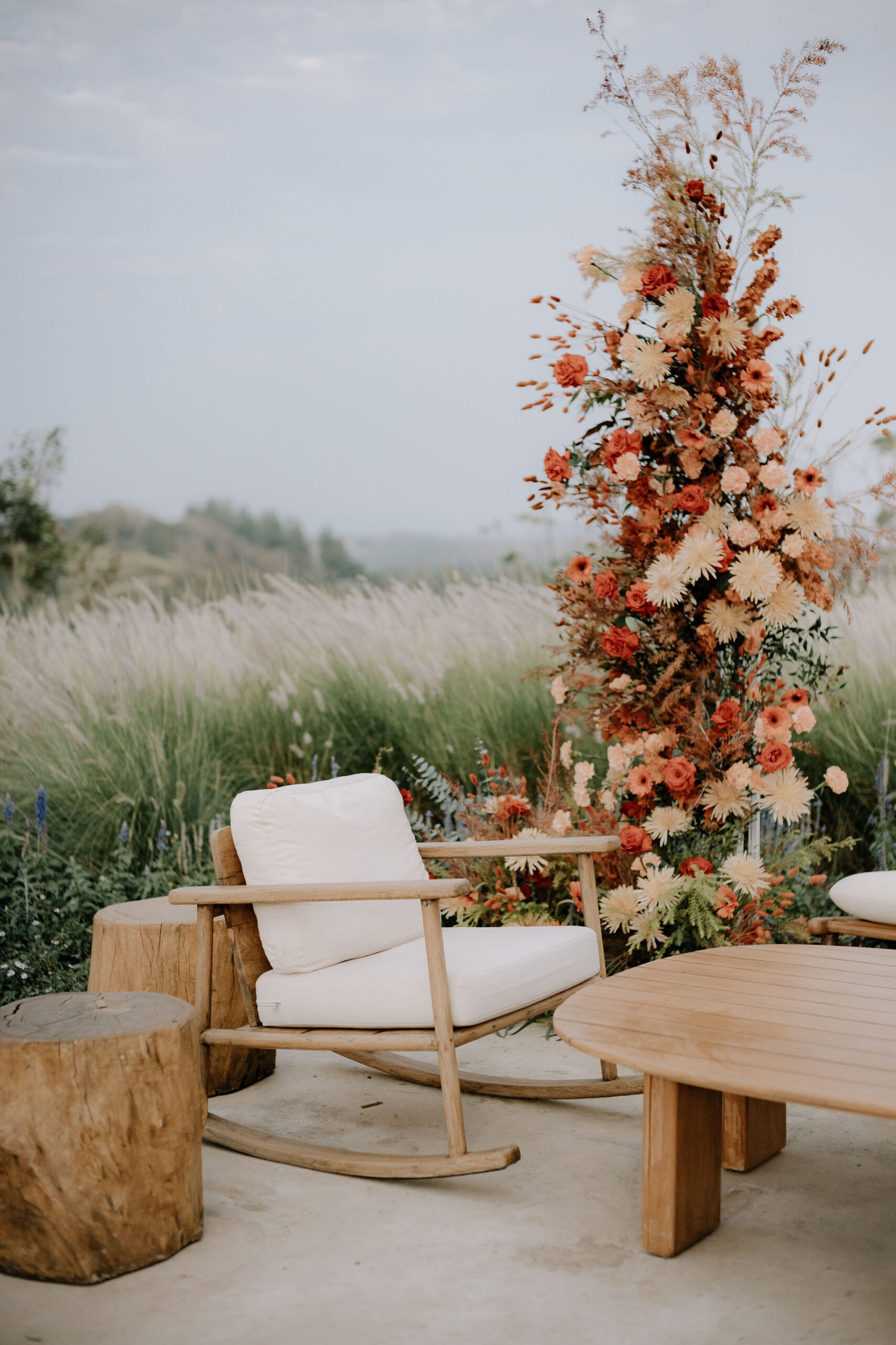 The ceremony took place at sunset. With the light gently descending over the hills and loved ones seated close enough to feel every breath and heartbeat, V+K exchanged vows with a quiet confidence that held the entire space in stillness.