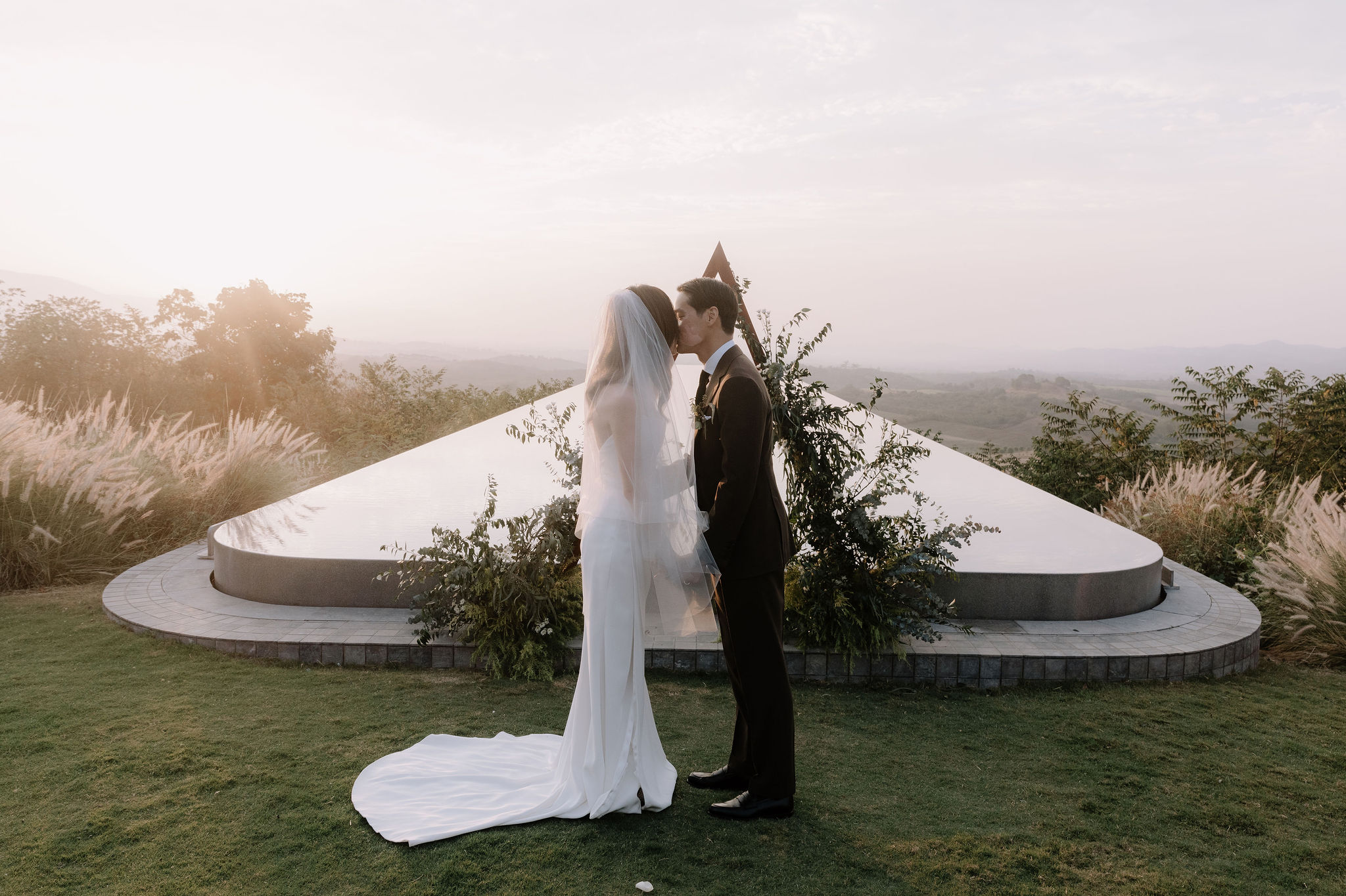 High above the fields and forests of Khao Yai, where golden sunlight filters through mountain mists and quietude is a luxury unto itself, V+K brought their closest family and friends for a destination wedding in Thailand that was deeply personal, thoughtfully designed, and filled with soul. Sala Khaoyai, with its boutique charm and panoramic views, became their private haven for the two-day celebration.